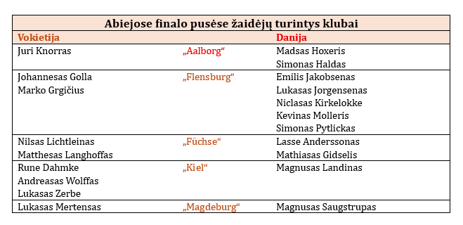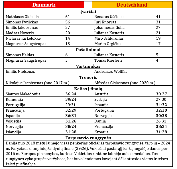 Danijos ir Vokietijos rankininkai kartą jau susitiko šių metų Europos pirmenybėse. Antrajame etape danai nugalėjo vokiečius 31:26.