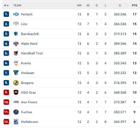 Pirmauja: „Ferlach“ – 17, „Linz“, „Barnbach“ – po 15, „Alpla“ – 14, „Tirol“, „Krems“ – po 13, „Vöslau“ – 12, „Bregenz“ – 11.