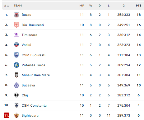Pirmauja: „Buzău“ – 18, „Dinamo“ – 16, „Politehnica“, „Vaslui“ – po 14, Bukaešto CSM – 13, „Potaissa“ – 12.