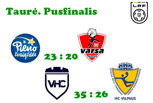 Pusfinalio rungtynėse „Pieno žvaigždės“ po permainingos kovos nugalėjo Alytaus „Varsą“ 23:20 (9:8), antrajame kėlinyje vyravusi „Šviesa“ gana įtikinamai įveikę „Vilnių“ 35:26 (14:15). Taurės turnyro finalo ketvertas šį savaitgalį vyksta Panevėžyje.