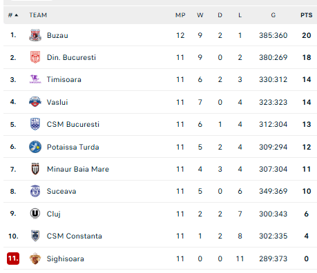 Pirmauja: „Buzău“ – 20, „Dinamo“ – 18, „Politehnica“, „Vaslui“ – po 14, Bukarešto CSM – 13.