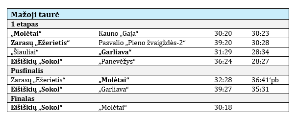 Eišiškių „Sokol“ – „Molėtai“ 30:18 (15:9). Geriausias žaidėjas – Astijus Urvikis („Sokol“).