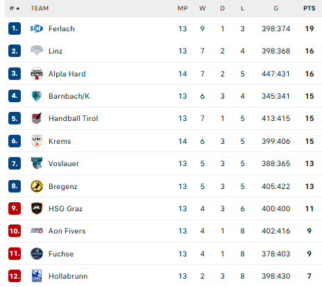 Pirmauja: „Ferlach“ – 19, „Linz“ – 16, „Alpla“ – 16.