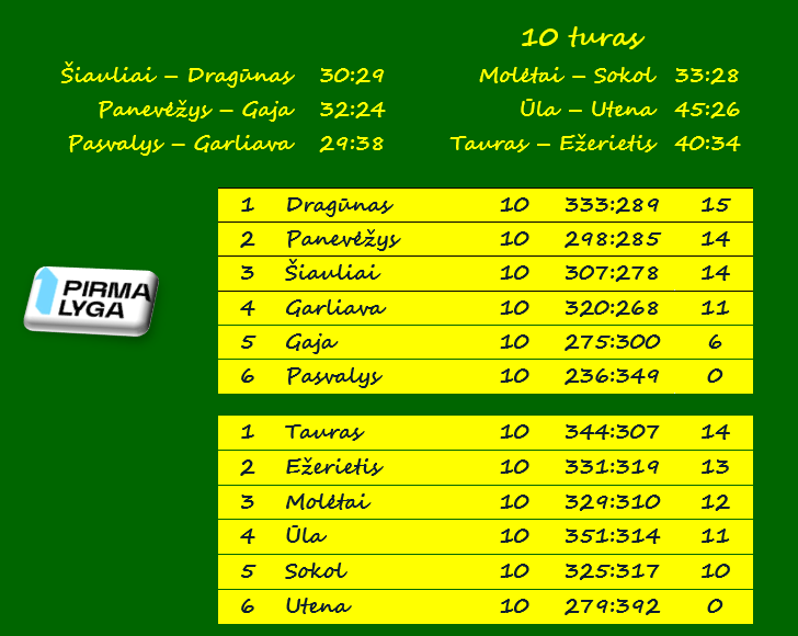 Sekmadienį paskutiniajame ture „Šiauliai“ namie po atkaklios kovos įveikė „Dragūno“ dublerius 30:29 (17:16), „Panevėžys“ savo aikštėje nugalėjo Kauno „Gają“ 32:24 (15:13), o „Garliava“ išvykoje pranoko Pasvalio „Pieno žvaigždžių“ dublerius 38:29 (16:11).