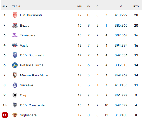 Pirmauja: „Dinamo“ – 20, „Buzău“ – 20, „Politehnica“ – 16, „Vaslui“ – 16, Bukarešto CSM – 15, „Potaissa“ – 14, „Minaur“ – 14.
