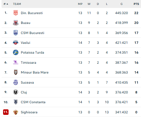 Pirmauja: „Dinamo“ – 22, „Buzău“ – 20, Bukarešto CSM – 17, „Vaslui“ – 17, „Potaissa“ – 16, „Politehnica“ – 16.