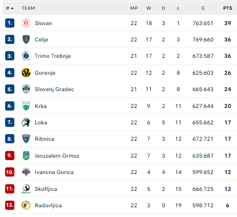 Šiuo turu baigiasi Slovėnijos lygos pirmasis etapas. „Krka“ jame užėmė šeštąją vietą ir toliau kovos dėl 1-8 vietų.