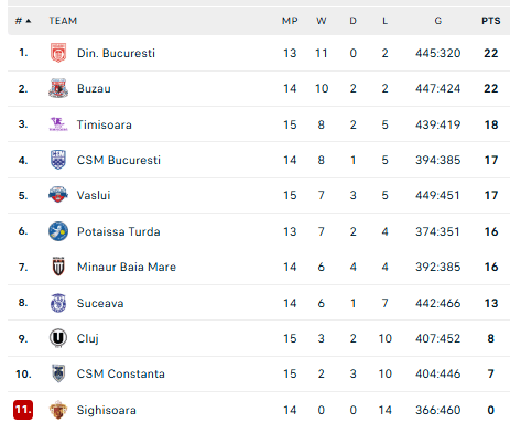 Pirmauja: „Dinamo“ – 22, „Buzău“ – 22, „Politehnica“ – 18, Bukarešto CSM – 17, „Vaslui“ – 17, „Potaissa“ – 16, „Minaur“ – 16.