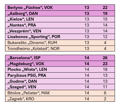 B grupėje trečia liko Plocko „Wisła“, kuri trečiadienį prieš pat sireną išlygino rezultatą per rungtynes namie su „Szeged“ ekipa (30:30). Dar du kelialapius į aštuntfinalį, kartu su PSG, iškovojo „Gudme“ ir „Szeged“ komandos.