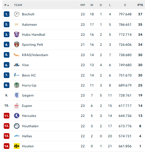 Pirmauja: „Achilles“ – 37, „Aalsmeer“ – 35, „Hubo“ – 34, „Sporting“ – 34, … „Hurry-Up“ – 25.