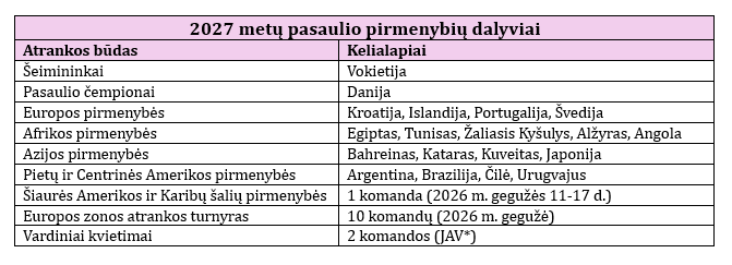 Vienas kelialapis bus įteiktas per Šiaurės Amerikos ir Karibų šalių pirmenybes, kurios numatomos gegužės 11-17 dienomis JAV-e.