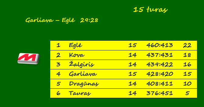 | Skirtumas | 15 – Žalgiris (su Kova) |