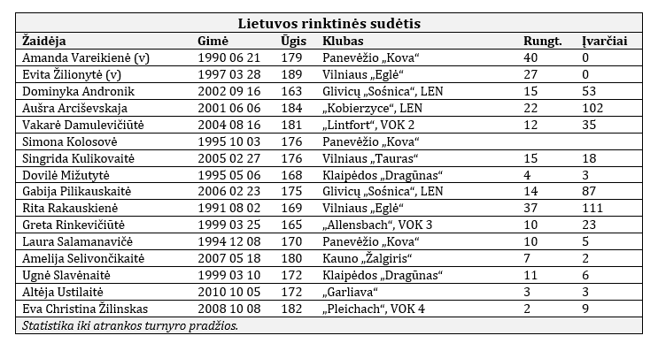Lietuvos komandoje, palyginti su praėjusiu atrankos langu, įvyko viena permaina. Į rinktinę neatvyko Gerda Kairytė, žaidžianti Vokietijos lygoje paskutinę vietą užimančioje Hales-Noištato „Union“ komandoje.