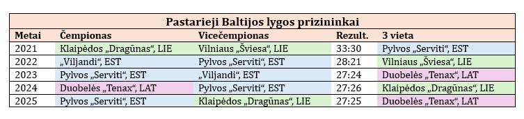 Pirmaisiais turnyro sezonais, dar praėjusiame amžiuje, Baltijos lygoje vyravo Kauno „Granitas“, čempionu tapęs net septynis kartus (1991, 1992, 1994, 1996, 1997, 1998 ir 1999 m.). 1995 metais aukso medalius laimėjo Lietuvos rinktinė.