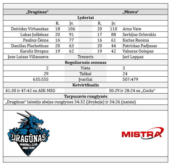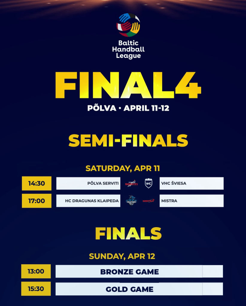 Du stipriausi Lietuvos vyrų rankinio klubai Klaipėdos „Dragūnas“ ir Vilniaus „Šviesa“ išvyko į Estiją, kur bandys įrodyti, kad yra stipresni negu Estijos rankinio lyderės Pylvos „Serviti“ ir Rasiku „Mistra“ komandos. Ši ketveriukė savaitgalį kovos Baltijos lygos finalo ketverte.