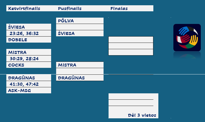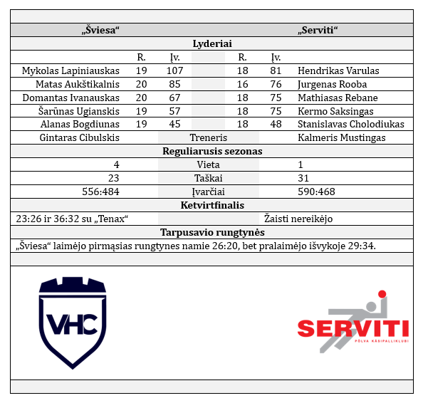 Šeštadienį Pylvos „Mesikapa“ salėje pirmosiose pusfinalio rungtynėse „Šviesos“ vyrai laikys šeimininkų „Serviti“ egzaminą. Paskui „Dragūnas“ kovos su kita Estijos komanda Rasiku „Mistra“.