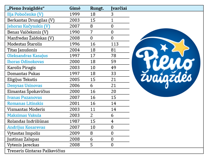 Tuo tarpu „Pieno žvaigždės“ vasario ir kovo mėnesiais Lietuvos lygoje ir Baltijos lygoje per aštuonerias rungtynes nepasiekė nė vienos pergalės. Vis dėlto ir čia yra vienas didelis, gal net ne didelis, o milžiniškas „bet“ – pasvaliečiai šiuo laikotarpiu vienintelį tašką iškovojo žaisdami su Vilniaus „Šviesa“.