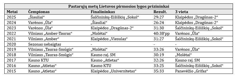 Varėnos komanda buvo pirmosios lygos čempionė 2023 ir 2024 metais. Tiesa, tuomet pirmojoje lygoje žaidė pagrindinė „Ūlos“ ekipa. Kita vertus, keli šį sezoną dubleriams atstovaujantys jaunuoliai (Arnas Narijauskas, Armandas Sinkevičius, vartininkas Nojus Maziukas) jau sėkmingai žaidžia pagrindinėje komandoje.