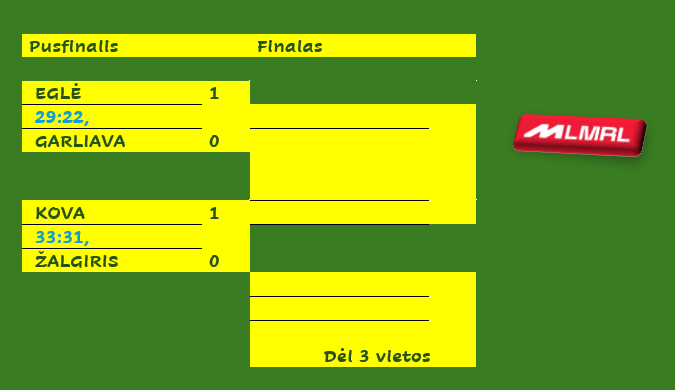 Antrosios pusfinalio rungtynės bus žaidžiamos sekmadienį Garliavoje ir Kaune. Šiame etape kovojama iki dviejų pergalių.