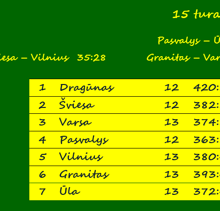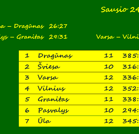LRL. „Dragūnas“ lieka nepažeidžiamas, kitas rungtynes laimėjo „Granitas“ ir „Varsa“